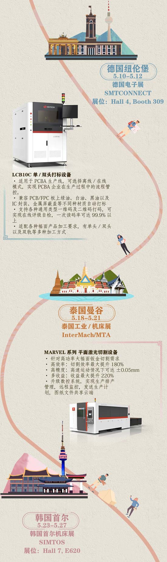 五月,華工激光帶你環(huán)球游~多場海外金屬加工、3C電子等行業(yè)展會,有才有料的明星產(chǎn)品和系列解決方案show給你看!