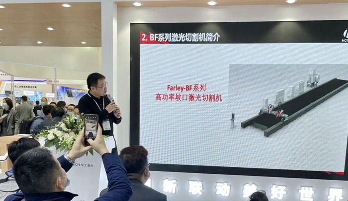 為讓與會(huì)者更直觀感受激光智造的奇妙體驗(yàn),華工激光帶來(lái) 交互式激光文創(chuàng)定制自動(dòng)化線 。