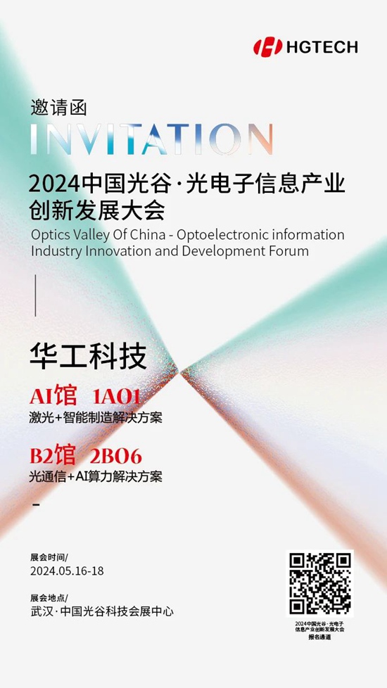 2024中國(guó)光谷·光電子信息產(chǎn)業(yè)創(chuàng)新發(fā)展大會(huì)將于5月16日-18日在中國(guó)光谷科技會(huì)展中心舉行,華工科技將攜激光智能裝備及智能制造整體解決方案、光通信+AI算力解決方案亮相本次大會(huì)。
