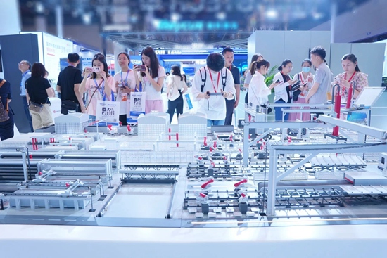 現場展出的重工行業(yè)智能工廠模型是基于華工科技為太原重工打造的標桿案例,模型由板材下料產線、型材下料產線、焊接產線、涂裝產線、裝配產線五大核心生產線組成,展示了重工行業(yè)的生產工藝流程、產線布局、物流轉運規(guī)劃等內容,通過該款模型,觀眾能夠直觀地體驗重工業(yè)智能工廠的科技魅力和無限潛力。