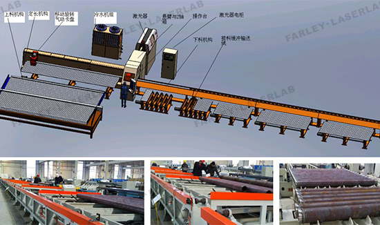 “全自動化數控激光切管生產線”始于2011年3月份。基于“三一重工”全面改進生產工藝,提高生產效率的需求實際,華工法利萊研制開發出數控激光切管系統(JKG9015)3臺,目前3臺激光切管系統分別布局在三條不同的生產流水線上(每條線總長60米,寬10余米)。該切管線能實現鋼管材料從上料、輸送、定長、切割、下料、傳輸到流水線不同下續環節等整個過程的完全自動化。