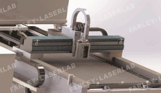 龍門式雙驅結構,切割區域完全封閉,并具有工作區域照明,橫梁雙邊驅動結構設計合理,具有高剛性、良好的穩定性,控制精度高。