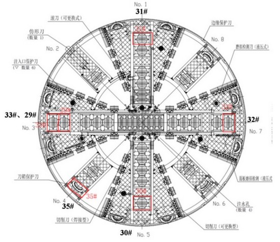 滾刀由刀體、刀圈、擋圈、端蓋、軸承五大部分組成,刀圈是加熱到100~200℃安裝到刀體上。在盾構機施工硬巖或上軟下硬、上硬下軟等復合地層時,中心滾刀在該類地層掘進中磨損較快,而在上軟下硬地層中,滾刀偏磨現象比較常見,因此,刀圈屬于極易磨損件,超過磨損量閾值后則需要進行更換。而盾構機開倉更換易損件屬于危大工程范疇,風險高、技術要求高以及工作強度大,同時,也會大大提升生產周期及成本。因此,提高刀圈的使用壽命可大大減少更換次數,降低人力、物力的消耗,節約成本,也進一步保障生產安全及周期可控,在工程實踐中具有重要的意義。