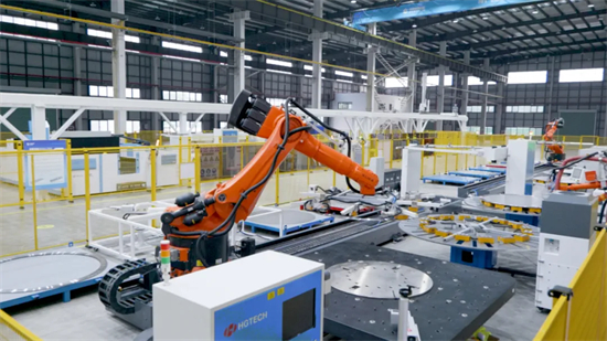 立足高端裝備制造,推動制造業高端化、智能化、綠色化發展。華工科技參與打造的太原重工智能高端液壓挖掘機生產車間項目,產線總長超13000米,創新應用“超級排料人工智能算法”、“弱特征切割件高精度識別與定位”、“多機器人協同編隊柔性拾取”等9大關鍵技術,年產挖機5萬臺,平均每4.4分鐘就有一臺挖機下線,車間整體自動化率超80%,是行業內規模領先、覆蓋面廣、流程完備的智能工廠。