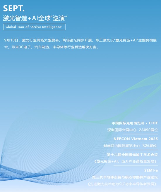 圍繞激光智造+AI,華工激光持續提升市場影響力與品牌聲量,通過全球展會、論壇展示領先的激光智造解決方案。