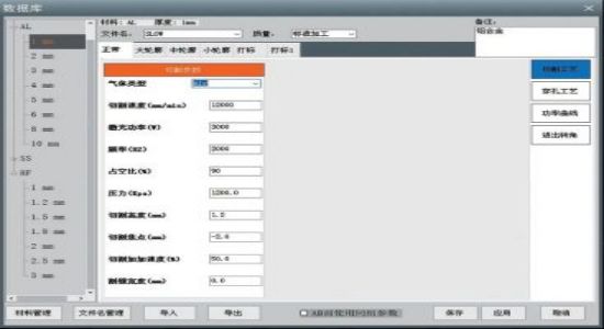切割三維工件時并不一直是直線切割,在切割過程中會有大量的拐角、凸起或變向,機床的實際運行速度是在不斷變化的。為此,我們采集了實時路徑速度、激光器功率、頻率、占空比等參數數據,根據其變化匹配出的最佳切割參數,找其相對應的函數關系,實現輸出變量將時刻變化的參數揉到機床的運動中,實現效率不減,切割質量上升,或者效率略降,切割質量提升。將該公式寫入系統程序中,通過人機交互界面直接激活功能即可使用。