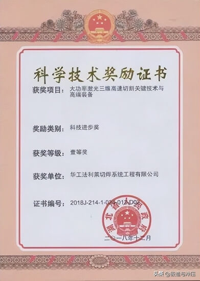2015年·“汽車制造中的高質(zhì)高效激光焊接、切割關(guān)鍵工藝及成套裝備”項(xiàng)目榮獲“國家科技進(jìn)步一等獎(jiǎng)”;
