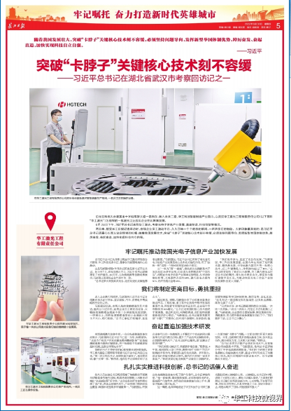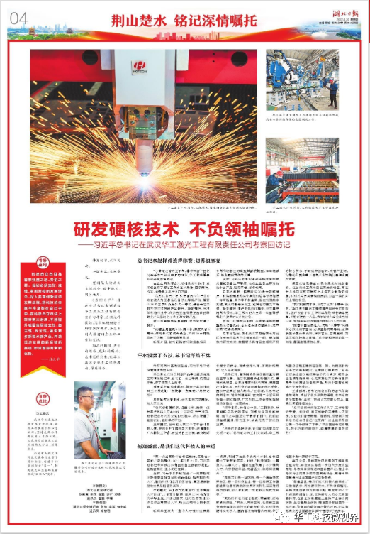 6月28日,習近平總書記在湖北省委書記王蒙徽、省長王忠林陪同下,來到華工科技子公司武漢華工激光工程有限公司考察,在公司全體員工中引發熱烈反響,大家紛紛表示:“將深入踐行習近平總書記考察時的重要講話精神,踔厲奮發,為實現科技自立自強貢獻力量”。人民日報、央視新聞聯播、央視新聞、湖北日報、湖北電視臺、長江日報等多家主流媒體對華工科技展開回訪,并進行了全方位、多視角報道。