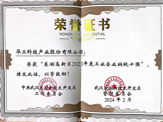 華工科技連續(xù)多年獲評“東湖高新區(qū)2023年度工業(yè)企業(yè)納稅十強”稱號