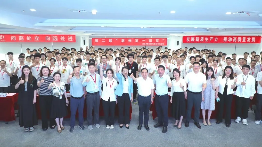 ? 7月9日,光谷卓越工程師(激光)實踐基地培訓班第二屆“激光第一課堂”在華工科技正式開班。東湖高新區黨工委委員、管委會副主任沈陽東,組織部副部長胡波,湖北省制造業工程師協會秘書長、武漢光谷人才集團有限公司黨委副書記、總經理孔璇等出席,首屆學員代表及第二屆200名學員參加活動。