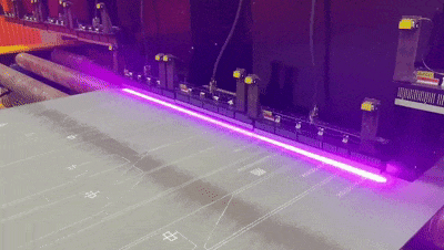 與畫紙船不同的是,打印造船板材的要求更為嚴苛,噴印信息要內容清晰、位置精確。為此,華工激光自主研發gen文件解析圖形技術和圖形像素補償技術,確保信息準確,并采用3D視覺精準定位,即便是10米長的板材,裝配線精度也能達±1毫米。