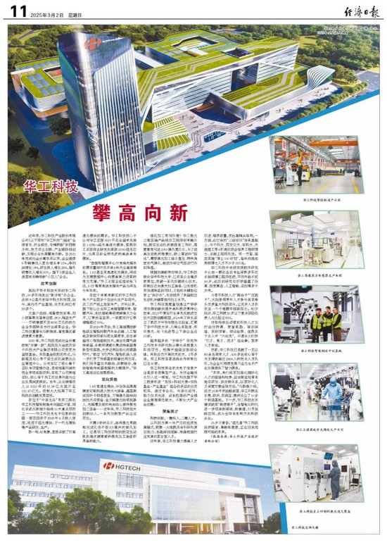 3月2日,《經濟日報》聚焦華工科技,整版刊發《華工科技攀高向新》,深入報道公司錨定“全球首發、行業領先、專精特新”的目標方向,發力自主創新、產業鏈協同創新,向行業創新高峰攀登的拼搏故事。