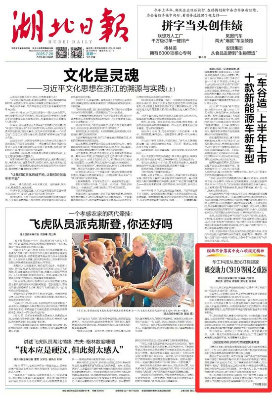 《湖北日報》頭版報道:華工科技從激光打標起家,蝶變助力C919等國之重器