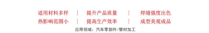 型材在線廣泛用于防撞梁、保險杠、排氣管、天窗支撐架及電梯滑軌、無縫鋼管、異型管生產廠家,替代傳統的氬弧焊、高頻焊的工藝方法,大大提高產品質量(更好的強度)和生產效率(比氬弧焊快很多,比高頻焊慢很多<高頻焊內外有很高的焊渣需在線去除》),它需要配合高質量的輥壓線,焊縫無限長。