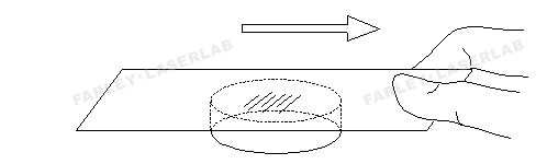 第四步:將擦鏡紙上有酒精的部位放在鏡片上面,先前后小幅度拉動,使擦鏡紙完全吸附在鏡片上面,并使得鏡片上的污染物松動,再輕輕往一個方向拉動。如圖3所示。在拉的過程中,由于擦鏡紙其他地方沒有酒精,可以吸干鏡片上的多余酒精,注意不要剩余酒精在鏡片上面,否則會形成酒精斑;